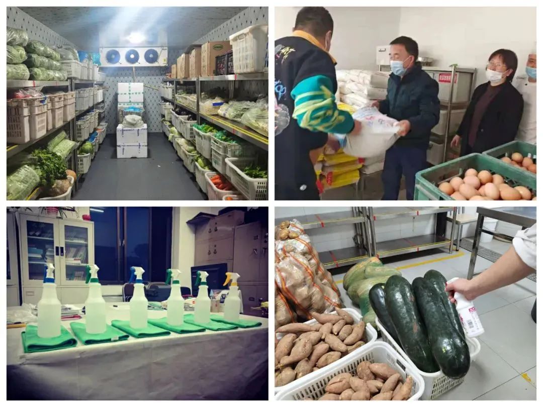 在學(xué)府等辦公區(qū)的儲藏室,“消毒液2000L、一次性餐盒23000個、口罩1500個、洗漱用品100余套、芹菜100斤、茄子300斤、土豆500斤、圓白菜500斤...”,工作人員正在認(rèn)真地清點核對采購回來的各種物資。