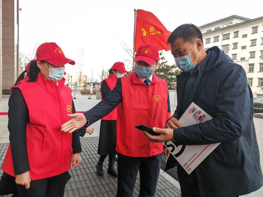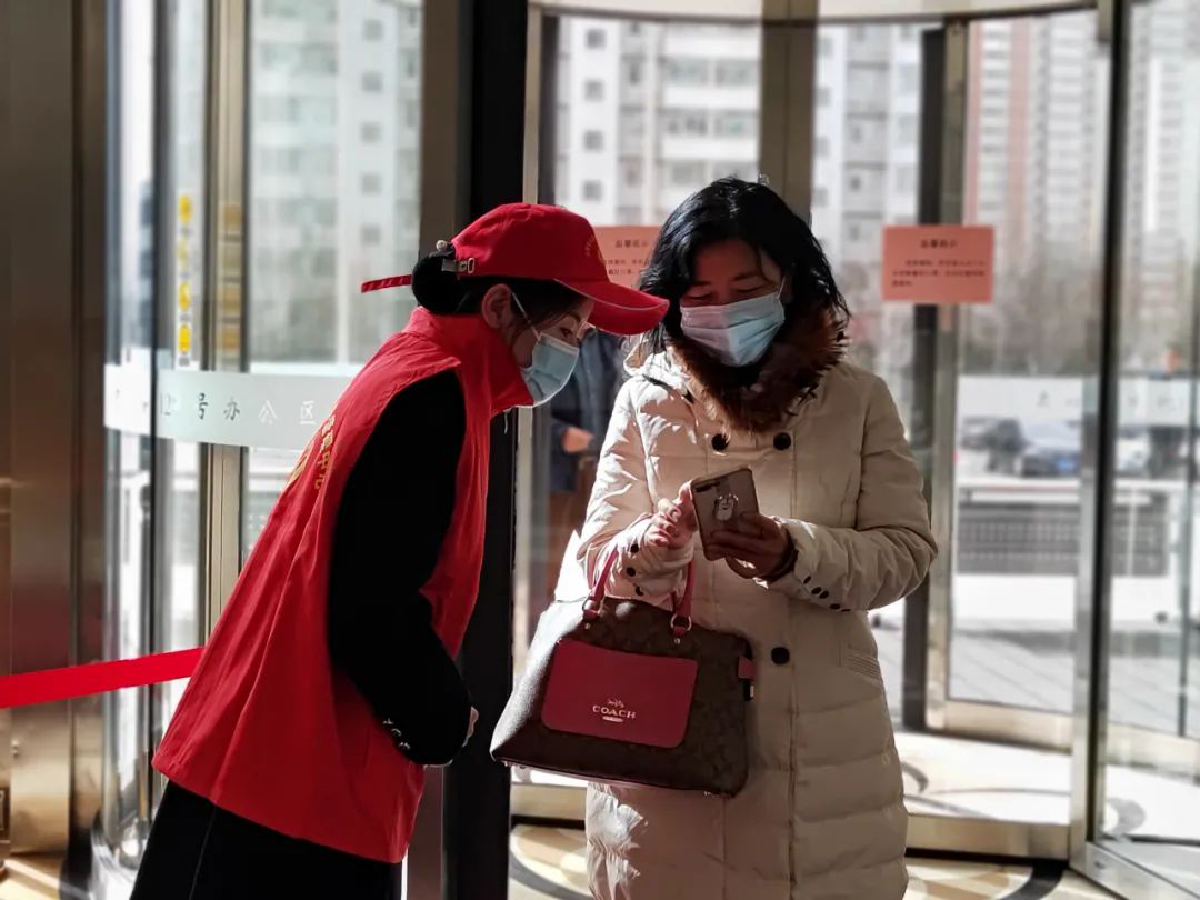 在辦公區(qū)域疫情防控卡口協(xié)助工作人員做好疫情防護(hù)知識宣傳、出入人員登記、兩碼查驗(yàn),體溫檢測等工作。