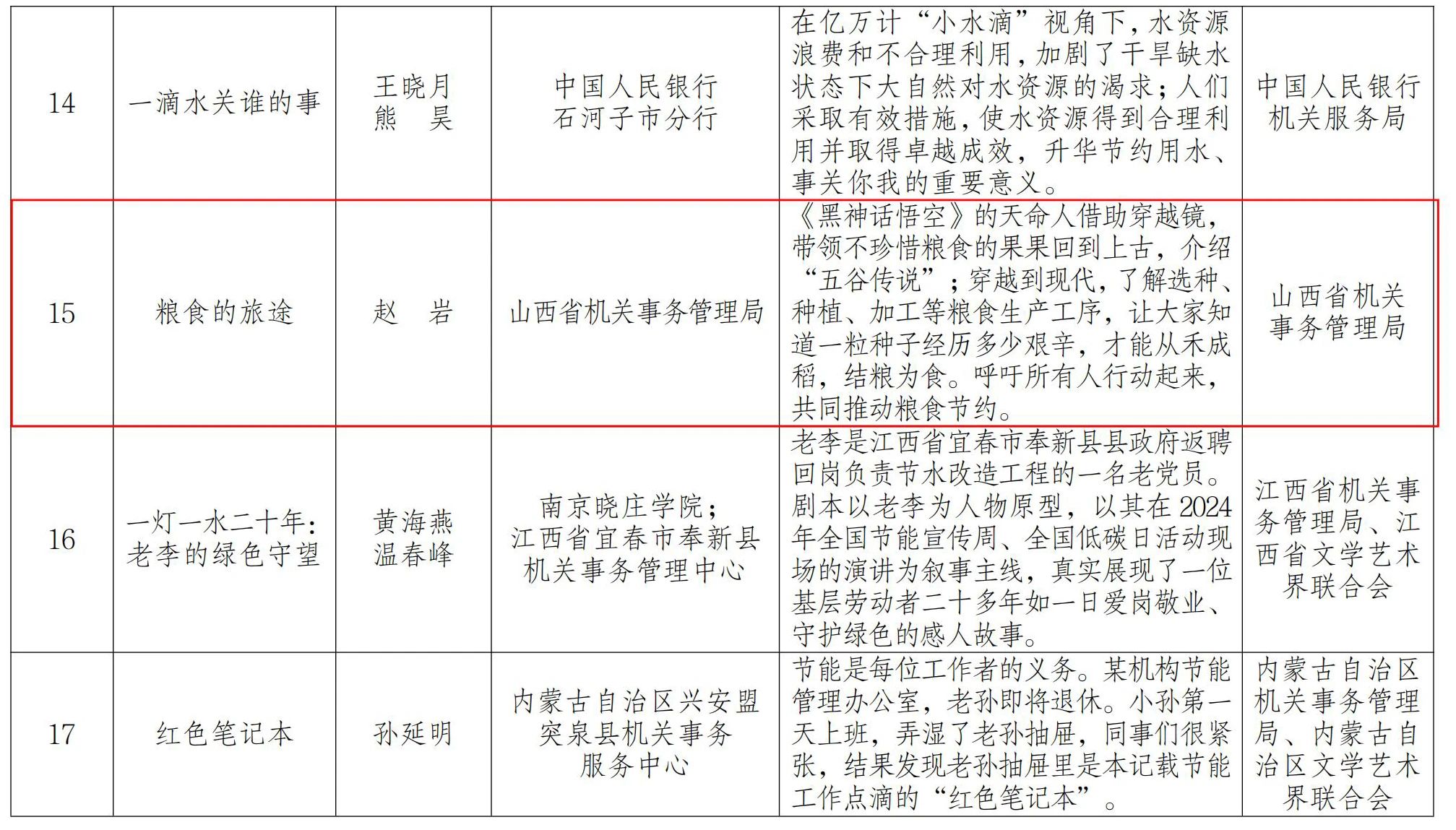 省局新聞 | 省機(jī)關(guān)事務(wù)管理局選送作品入圍2024年公共機(jī)構(gòu)節(jié)能主題優(yōu)秀劇本