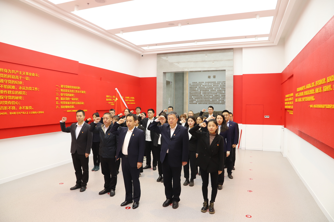 在宣誓廳,大家面對(duì)鮮艷的中國(guó)共產(chǎn)黨黨旗,舉起右拳,重溫入黨誓詞,錚錚誓言許下莊嚴(yán)承諾,宣示著對(duì)黨的堅(jiān)定信念和為黨的事業(yè)奮斗終身的強(qiáng)大決心。
