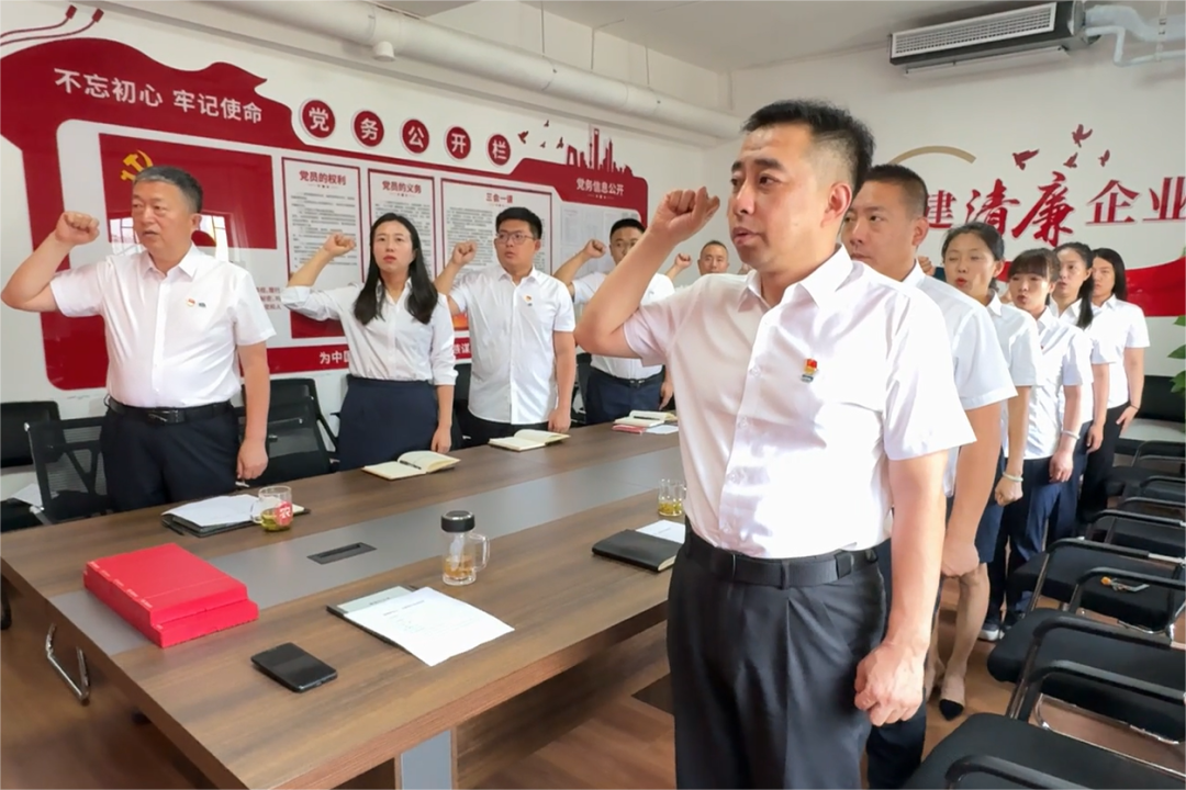 在鮮艷的黨旗下,晉勤科技全體黨員舉起右拳,用鏗鏘有力的誓詞,凝聚對黨忠誠的堅定信念,表達對黨的無限忠誠和敬意。
