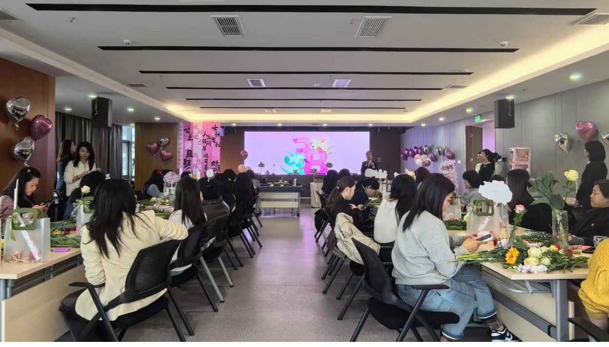 此次活動吸引了公司全體女職工的積極參與,現(xiàn)場氛圍熱烈,活動內容精彩紛呈。古箏老師以精湛技藝為大家呈上一場高水準的視聽盛宴;茶藝師的精彩演繹,讓大家于裊裊茶香中品味生活之美,體悟茶道文化的寧靜與優(yōu)雅;花藝師帶來新中式插花教學,女職工們在悉心指導下,親手打造出獨具匠心的花藝作品。一時間,現(xiàn)場花香彌漫,一束束精美插花作品為大家的生活添上了一抹盎然春色。