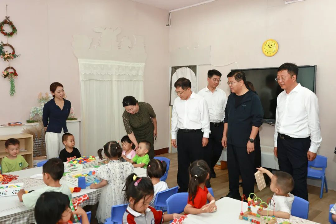 在局第一幼兒園,毛益民同志與屬地黨委政府負(fù)責(zé)同志共同為一幼新園址揭牌,參觀幼兒園環(huán)境設(shè)施,與教師親切交流。在塢城路幼兒園一分園,毛益民同志與省委黨校(山西行政學(xué)院)主持日常工作的副校(院)長宋惠民同志一起檢查幼兒園廚房、教室等設(shè)施設(shè)備,與孩子們互動(dòng)溝通,為教師送上慰問信與祝福,表達(dá)對教育工作的崇高敬意。