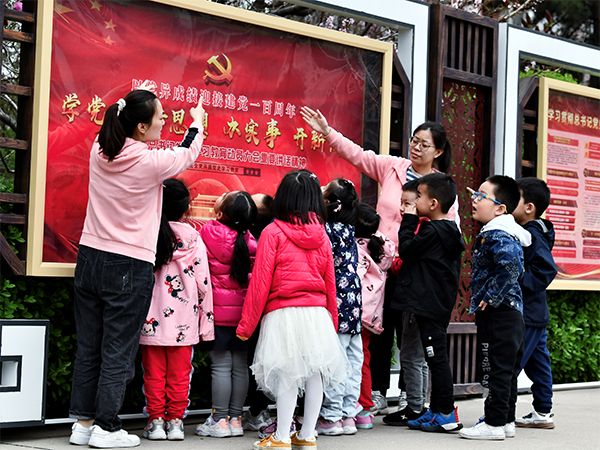 春光明媚,萬物復(fù)蘇。省直機(jī)關(guān)麗華苑小區(qū)鮮花盛開、綠柳吐新。人工湖畔文化長廊整齊懸掛著一排“紅色足跡”,似一道靚麗的風(fēng)景線吸引著過往的居民群眾駐足觀看、學(xué)習(xí)品讀。