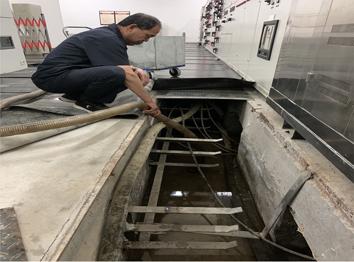 集團廣電后勤服務中心搶修電纜井積水